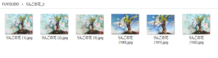 エクスプローラーでファイル名を一括変換で「りんごの花」フォルダを使います。