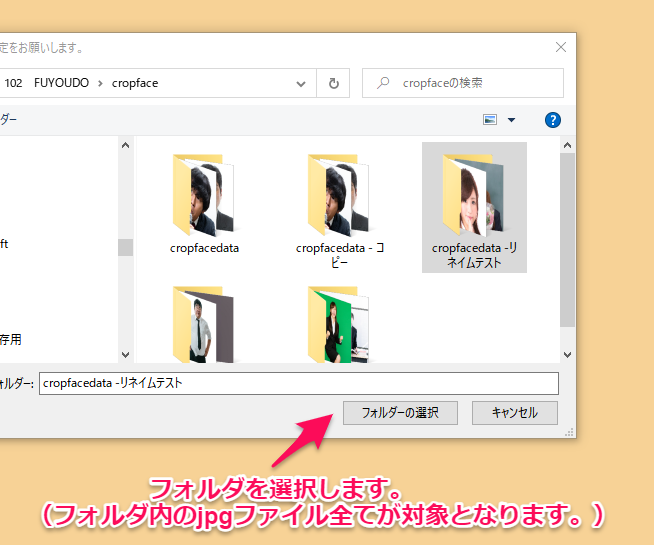 ファイル名の変換対象の写真が入っているフォルダを指定してください。